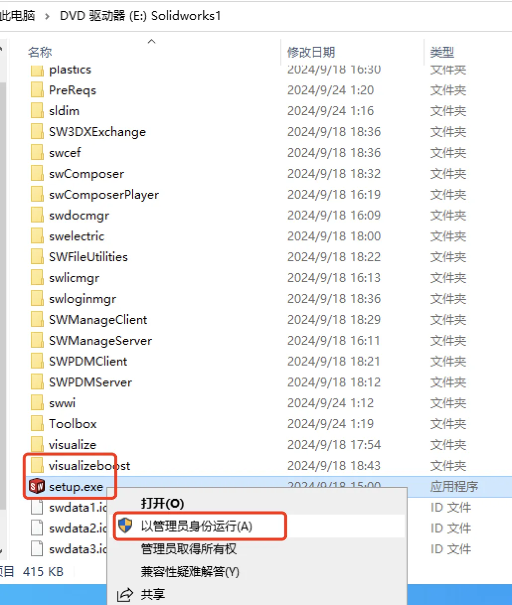 -解压安装包:找到下载好的 SolidWorks 2025 安装包,鼠标右键点击,选择 “解压到当前文件夹”,等待解压完成。