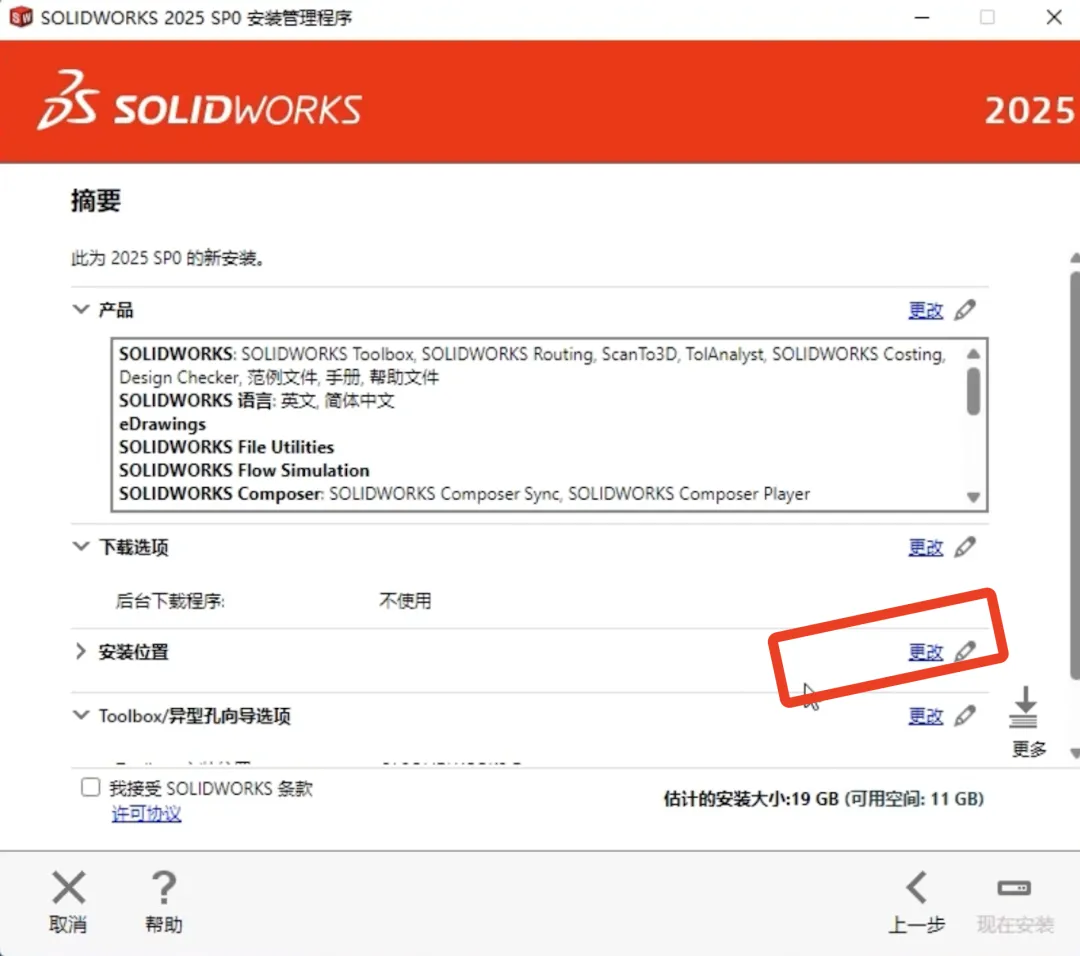 -设置组件位置:用同样方法更改 Toolbox 与 Electrical 安装位置,勾选 “我接受”,点击 “现在安装”,安装过程中弹出提示都点击 “确定”。