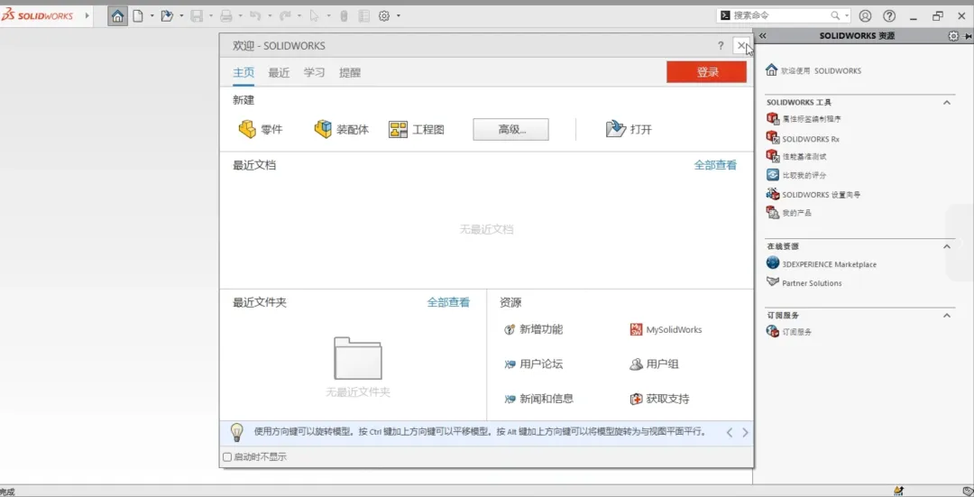 -启动软件:双击桌面 SOLIDWORKS 2025 图标,弹出界面点击 “接受”,即可开始使用。