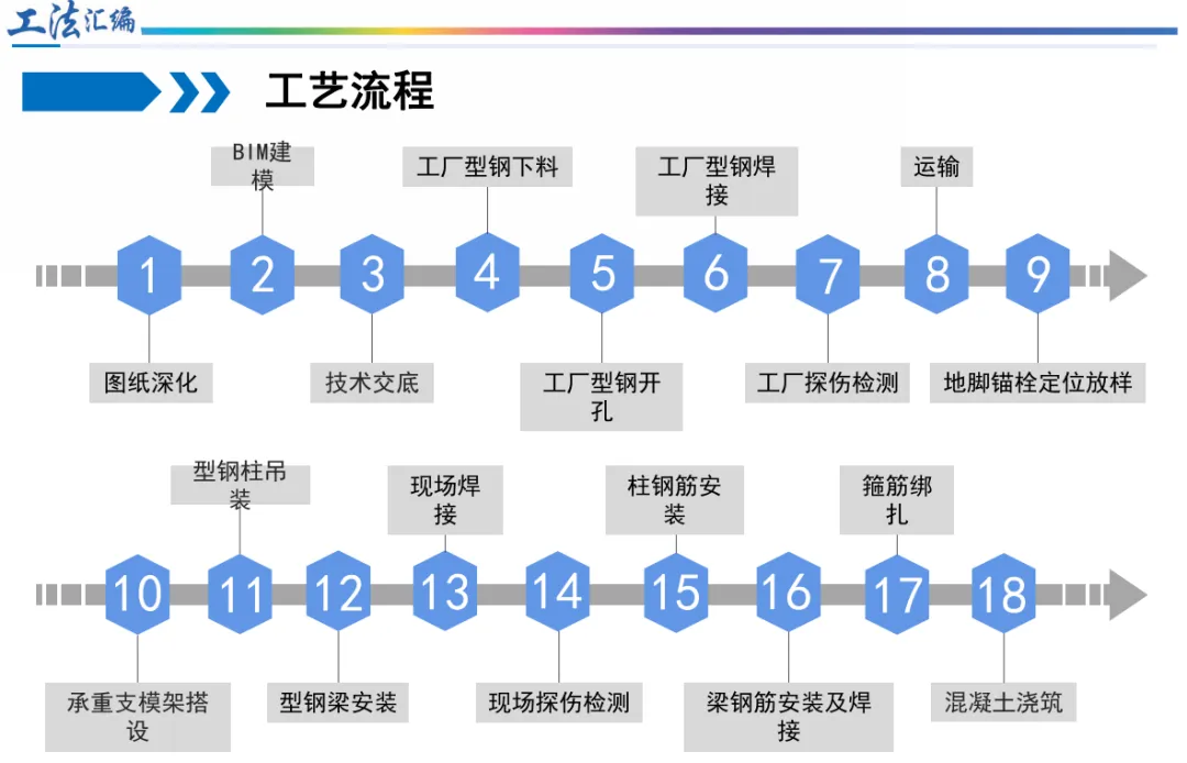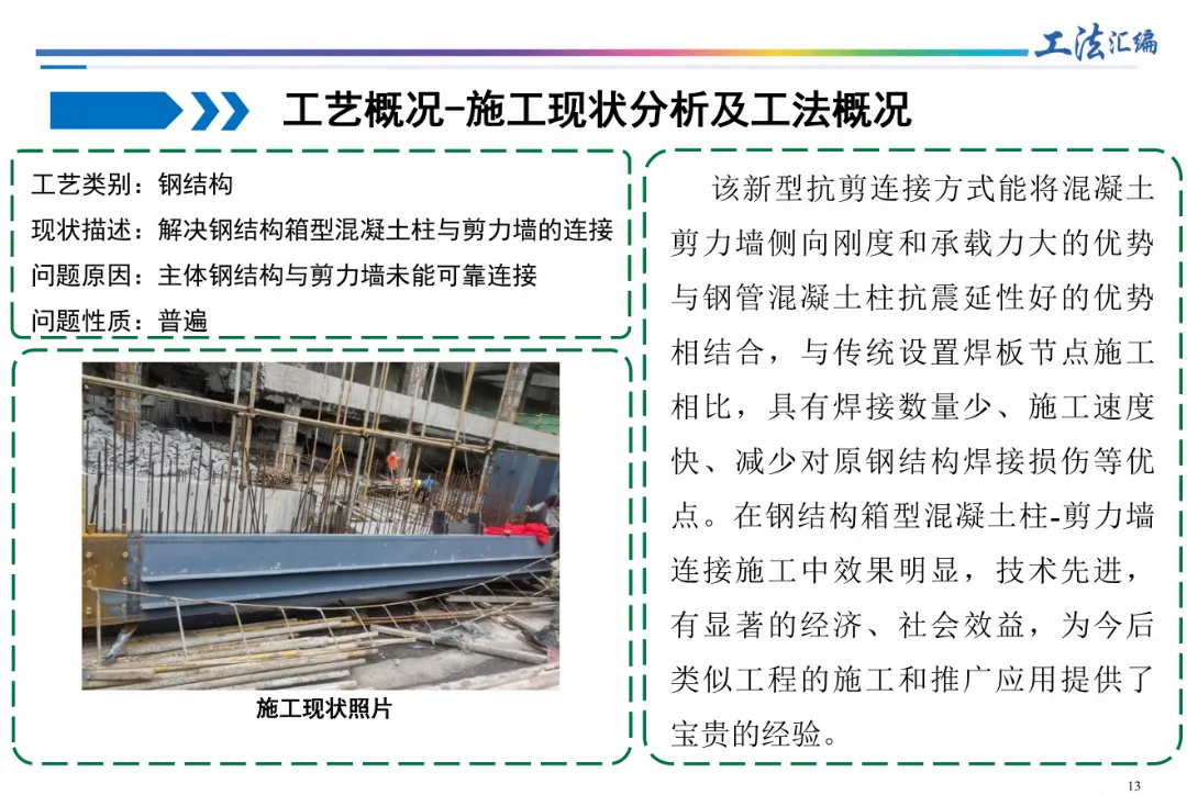 连接节点更高效: “封闭式免支拆模钢板箍劲性柱与钢梁连接节点施工工法”用钢板箍替代传统模板和箍筋,省去繁琐工序,节点质量更有保障。