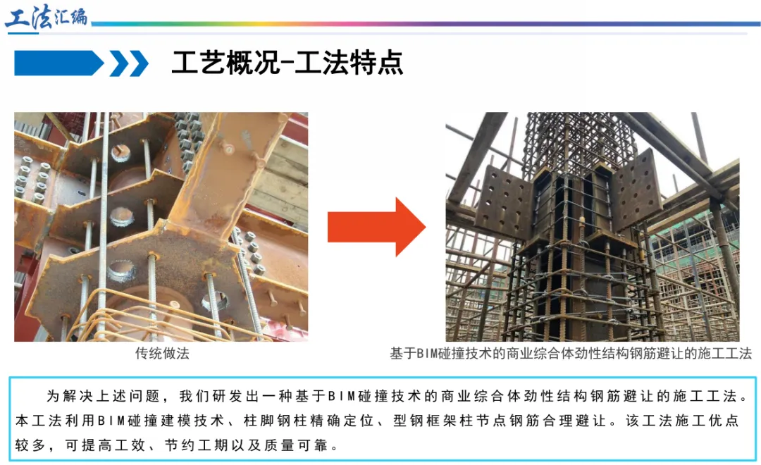 钢筋避让有智慧: “基于BIM碰撞技术的商业综合体劲性结构钢筋避让施工工法”在施工前就利用BIM技术进行三维模拟,提前优化钢筋与钢骨的排布,避免现场“打架”,省时又省力。