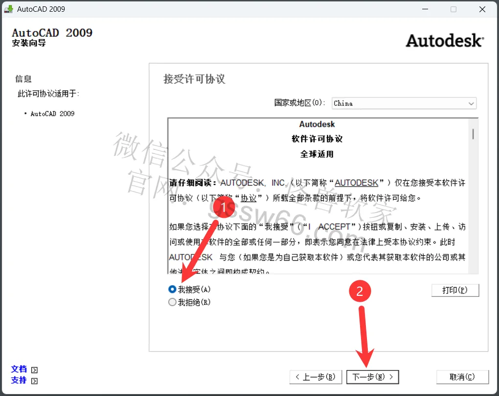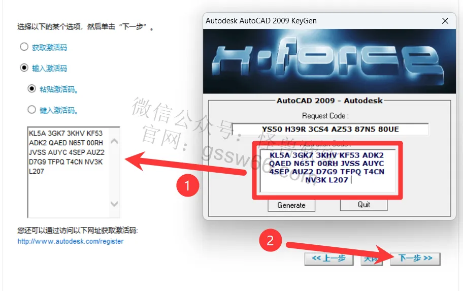 27,把激活码复制到CAD激活码框内,点击“下一步”