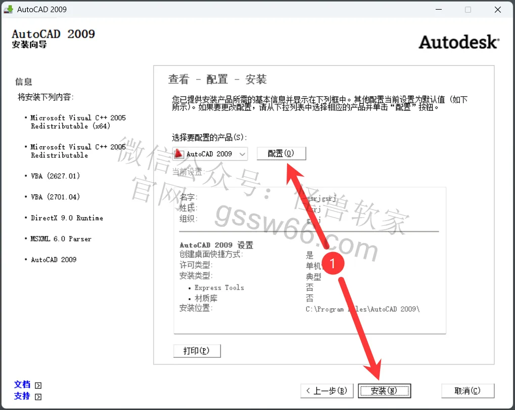 15,无须更改安装位置,点击“安装”,然后跳转到第19步,如需更改安装位置,点击“配置”。本例安装在D盘。