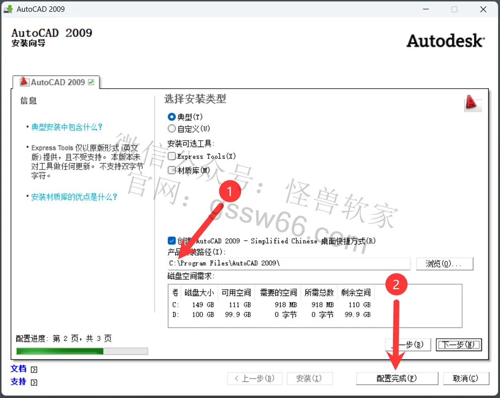 17,把安装路径首字母C改为D(安装路径不要出现中文),点击“配置完成”