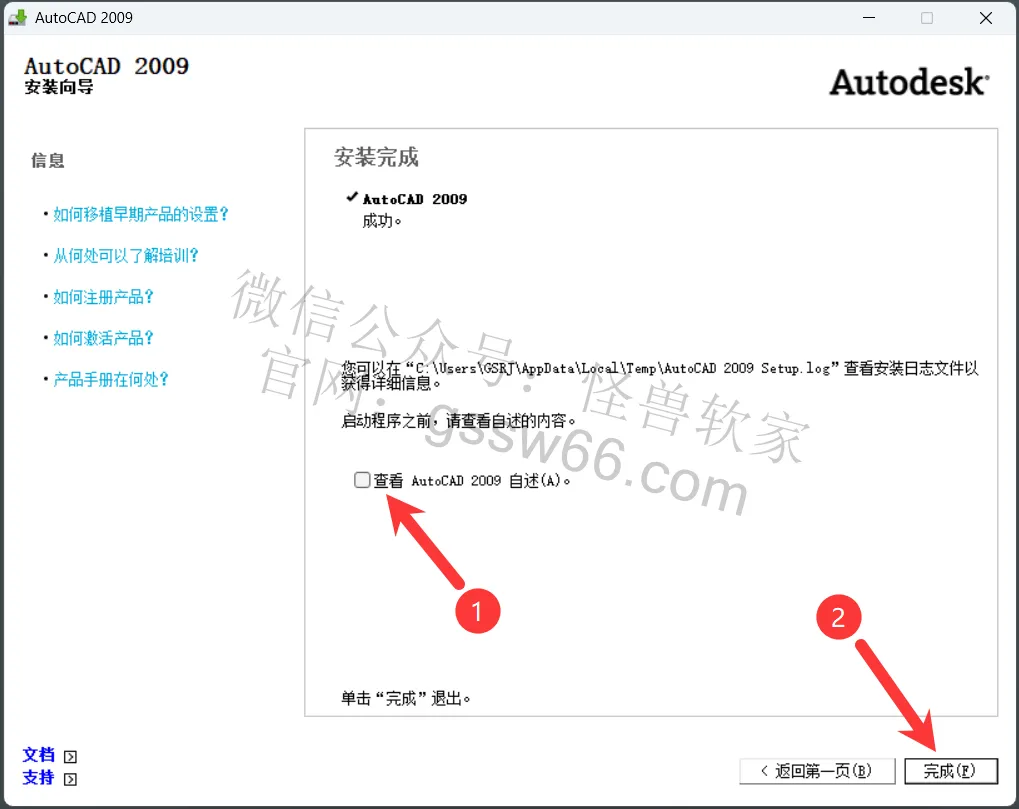 20,取消勾选“查看AutoCAD 2009自述”,点击“完成”