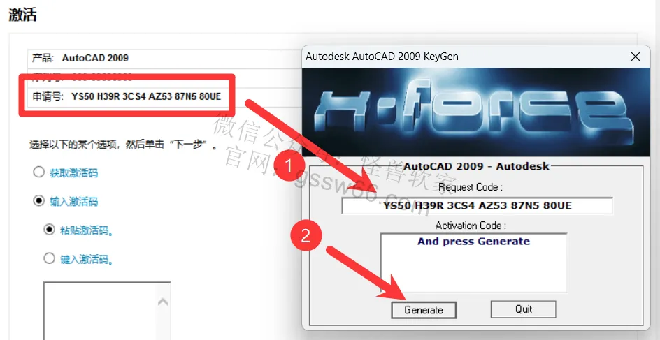 26,把CAD申请号复制到注册机内,点击“Generate”