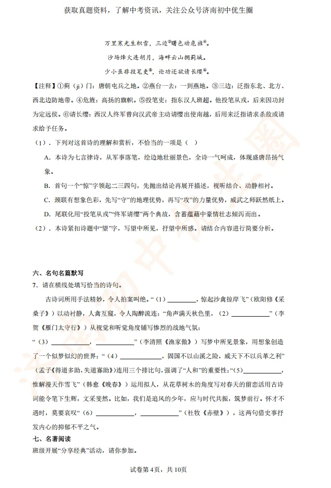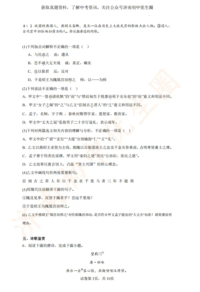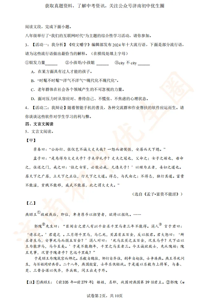 一模时间定了!24年济南初三一模真题+答案解析免费领取!