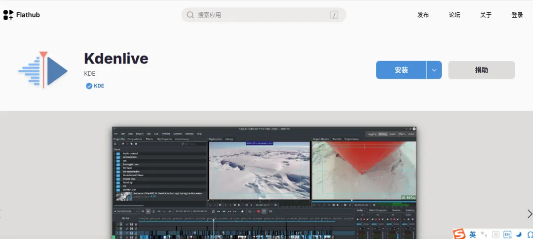 由于上述遇到的问题没办法解决,因此,我使用了Kdenlive官方推荐的方法使用:AppImage版本和通过Flatpak下载安装Kdenlive。