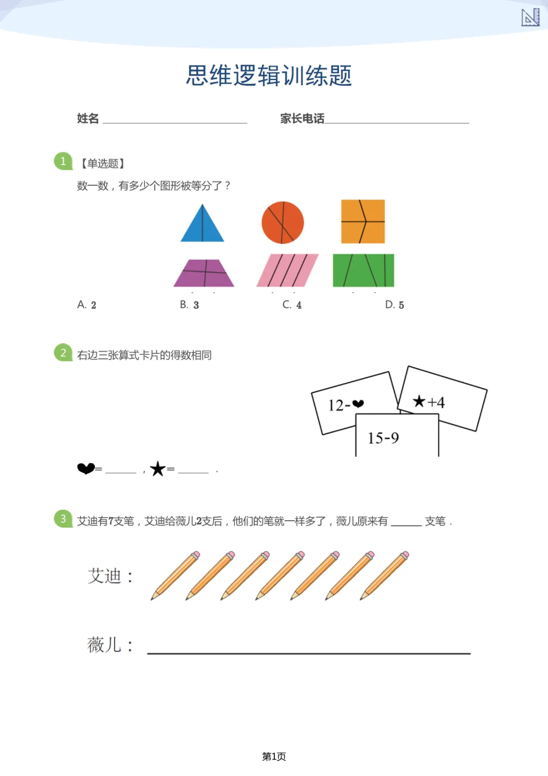 【免费下载】幼小衔接 思维逻辑训练题,PDF电子版,可打印