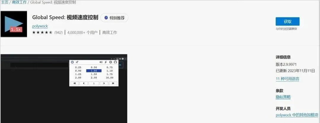 Global Speed 是一款能控制在线视频播放的 Chrome 、 Edge 、 Firefox 扩展,免费开源,无数据收集、无追踪,可以实现播放速度控制、倒带/前进、逐帧分析、标记、 AB 重复等功能,支持快捷键。