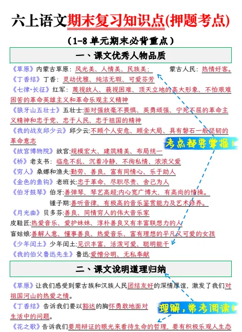 >六年级(上)语文_期末复习知识点,免费下载