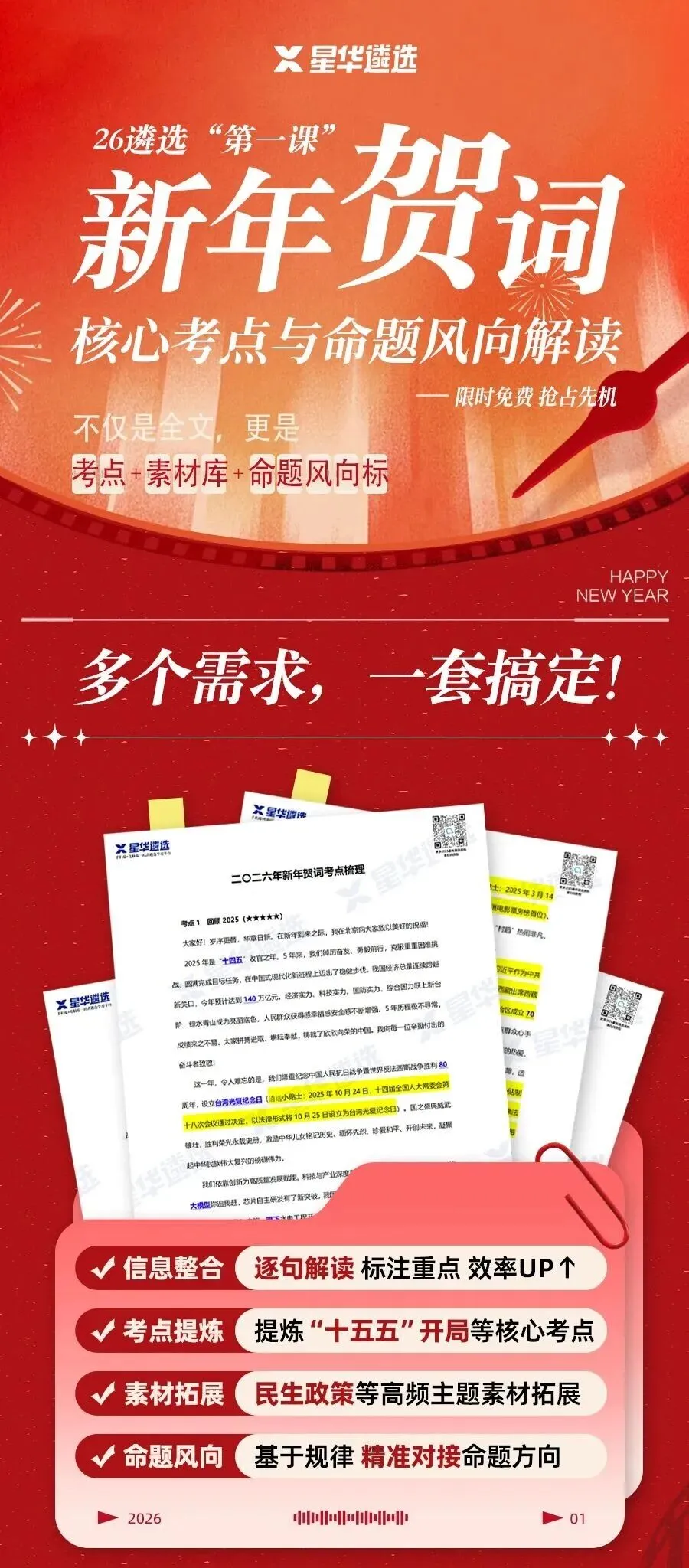 免费下载 | 二〇二六年新年贺词—遴选考点梳理