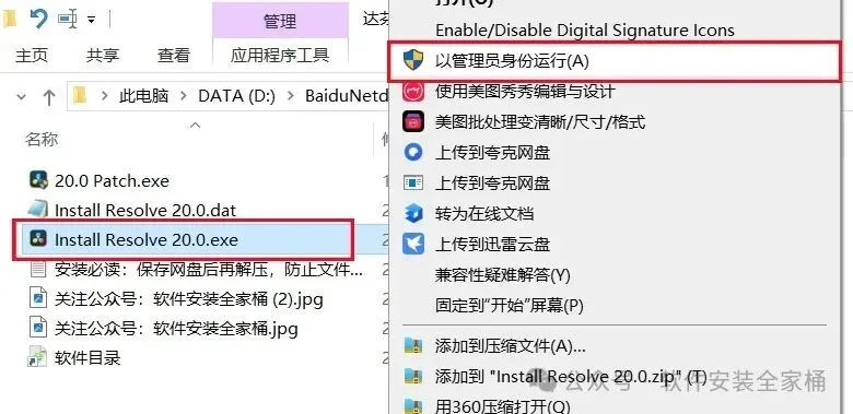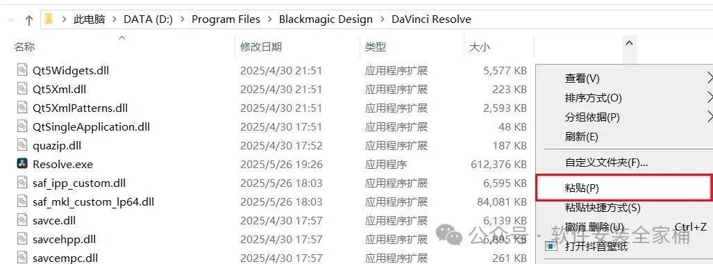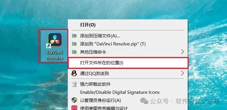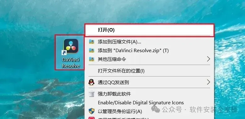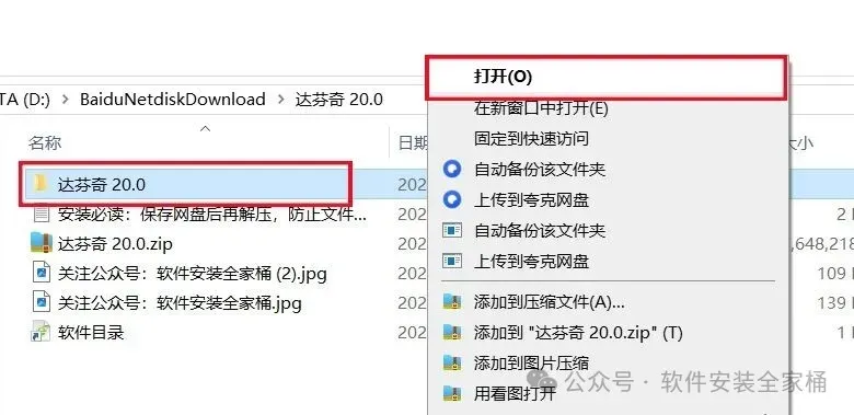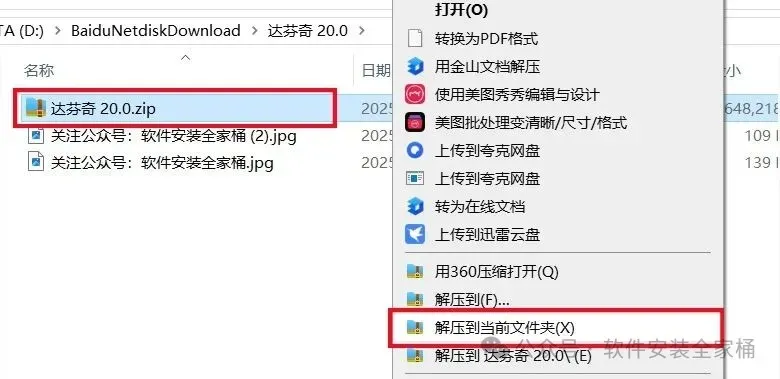 1.打开下载的达芬奇软件安装包,鼠标右击压缩包选择【解压到当前文件夹】。