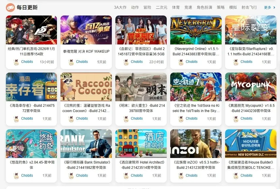 该网站收录了超过5000款PC单机游戏资源,从脍炙人口的经典作品,到近期备受关注的热门游戏,类型覆盖角色扮演、动作冒险、策略模拟等主流类别。庞大的游戏库意味着你很大概率能找到自己想玩的那一款,无论是怀旧重温还是尝鲜体验,都能获得比较丰富的选择。