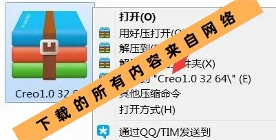 1.鼠标右击软件压缩包,选择解压到“Creo1.0”。