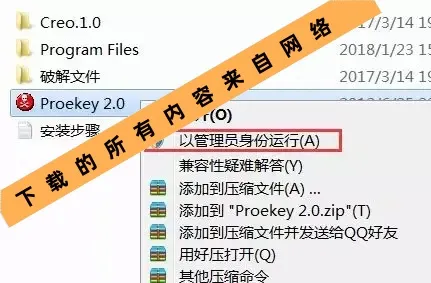 4.在解压出的文件夹中找到“Proekey 2.0”鼠标右击选择“以管理员身份运行”。