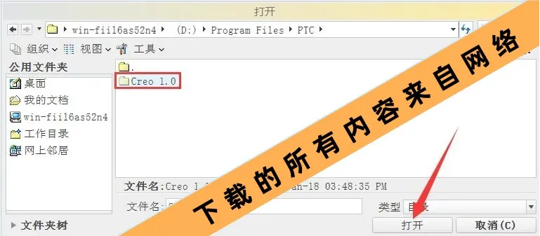 18.选中“Creo 1.0”,点(打开)。