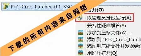 41.选中“PTC_Creo_Patcher_0.1_SSQ”鼠标右击选择“以管理员身份运行”。