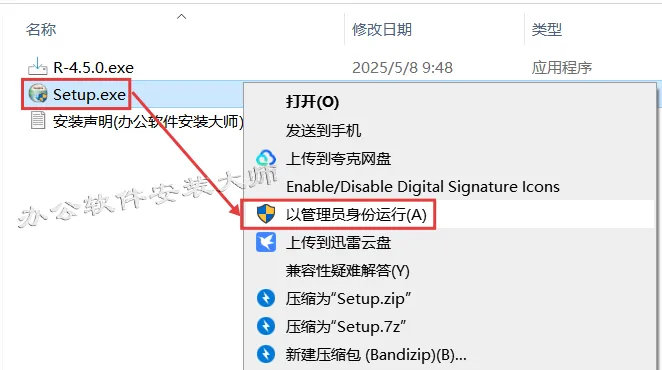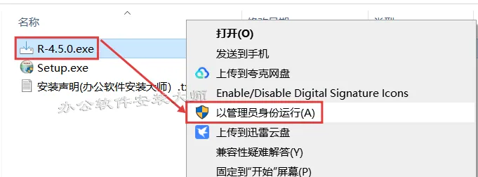 2.选中【R-4.5.0】程序,鼠标右键选择【以管理员身份运行】。