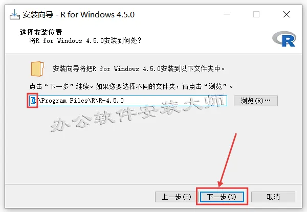 5.修改安装路径:可以把地址栏首字符C改为D,程序将安装到D盘(安装路径不要有中文),选择好路径后点击【下一步】。