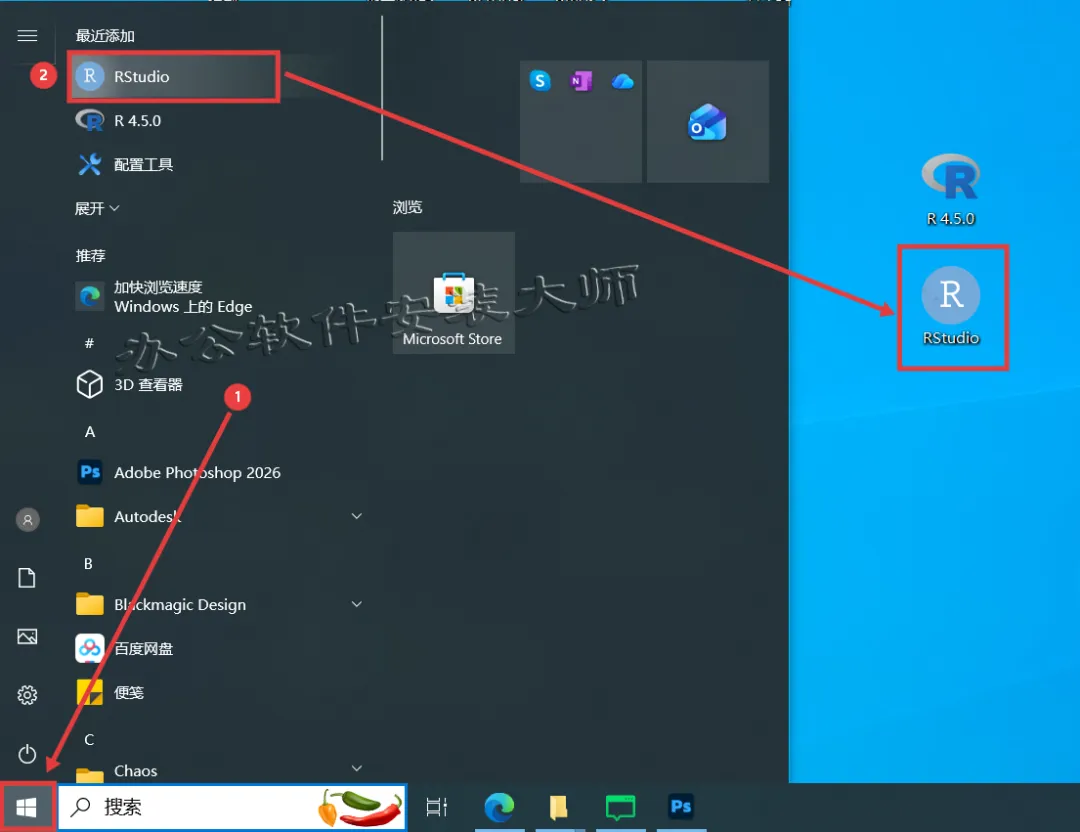 18.双击桌面【RStudio图标】打开软件。