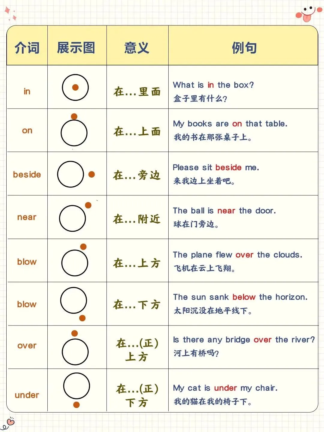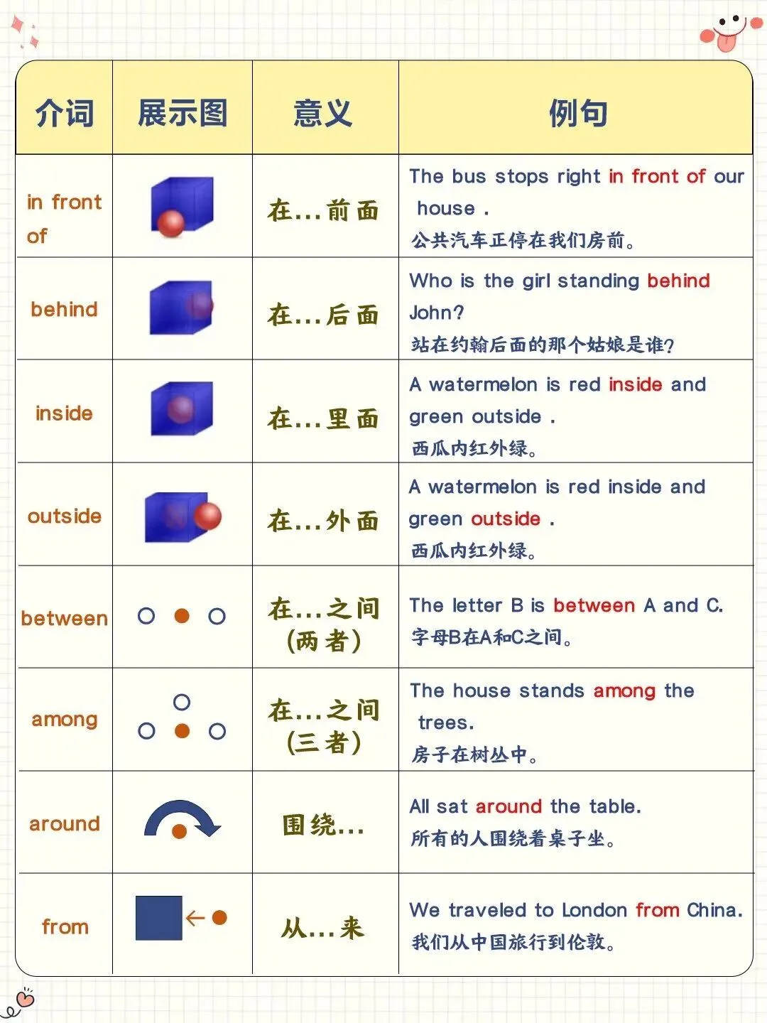 >一张图秒懂小学英语方位介词!家长速存,可免费下载打印