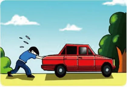 途中,车抛锚在水平路面上,家人试图推动汽车但没有推动。下列说法中正确的是( )