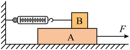 10. 如图所示,用F=6N水平向右的拉力匀速拉动物块A时,物块B静止不动,此时弹簧测力计的示数为4N。则物块B所受摩擦力的方向为______(填“水平向左”或“水平向右”),物块A受到地面的摩擦力的大小是______N。