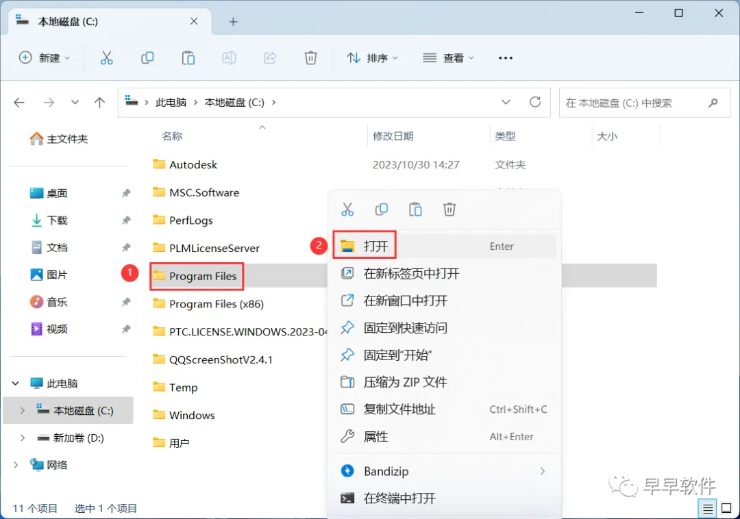5、找到粘贴的【Program Files】文件夹,右键【打开】它