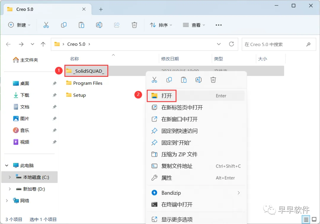 26、回到Creo 5.0文件夹,找到【_SolidSQUAD_】文件夹,右键【打开】它
