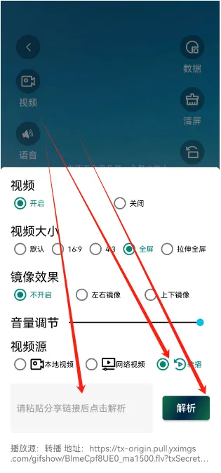 第三步:点击转播,粘贴对标直播间地址,点击解析等待完成即可