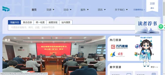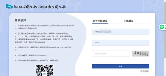 打开湖北省图书馆官网(https://www.library.hb.cn/),点击右上角登录按钮。然后在湖北省图书馆登录页(https://www.library.hb.cn/),输入身份证号码、密码(身份证后六位)登录。登录后,右上角会显示用户真实姓名。