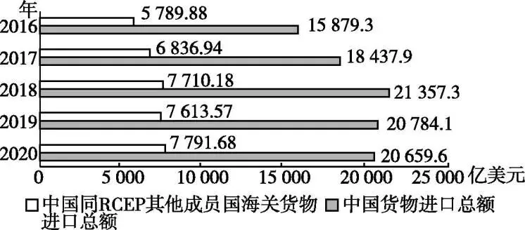 中国货物进口总额和中国同RCEP其他成员国海关货物进口总额