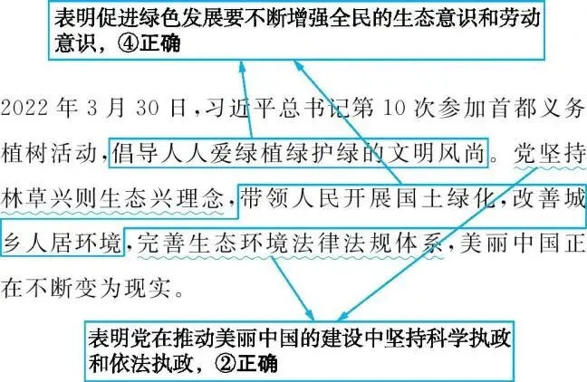 6.2022年3月30日,习近平总书记第10次参加首都义务植树活动,倡导人人爱绿植绿护绿的文明风尚。党坚持林草兴则生态兴理念,带领人民开展国土绿化,改善城乡人居环境,完善生态环境法律法规体系,美丽中国正在不断变为现实。材料表明