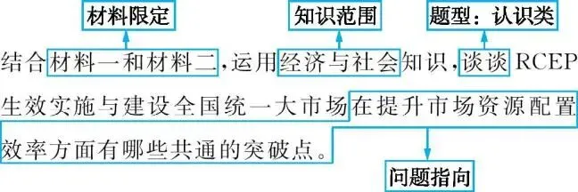 (2)结合材料一和材料二,运用经济与社会知识,谈谈RCEP生效实施与建设全国统一大市场在提升市场资源配置效率方面有哪些共通的突破点。(8分)