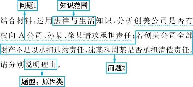 第二步,梳理思路。本题共两小问,涉及多个行为主体,要分析每个行为主体的做法以及各行为主体之间的关系,再运用相关法律知识作答。问题1:“客户对此颇为青睐,遂与创美公司签订《独家许可使用合同》”“被A公司发现并用于自己的产品”→可联系教材中民法典对著作权的限制,指出客户享有该图样的使用权,而A公司未经允许就使用,构成侵权,应该承担责任;“创美公司要求全体员工对产品研创严格保密”“员工徐某在朋友圈发工作照片时带入该画样”→可根据民法典和劳动法相关规定,指出劳动者有保密义务,徐某应承担相应责任;“朋友孙某点赞转发”→可联系侵权责任的承担方式的知识,指出孙某属于善意第三人,但转发行为造成了严重影响,应立即删除该信息,消除影响,赔礼道歉。问题2:“沈某大学毕业后与周某共同投资设立‘某市创美创意有限责任公司’”→可联系有限责任公司的责任承担方式的知识,指出沈某和周某承担有限责任。