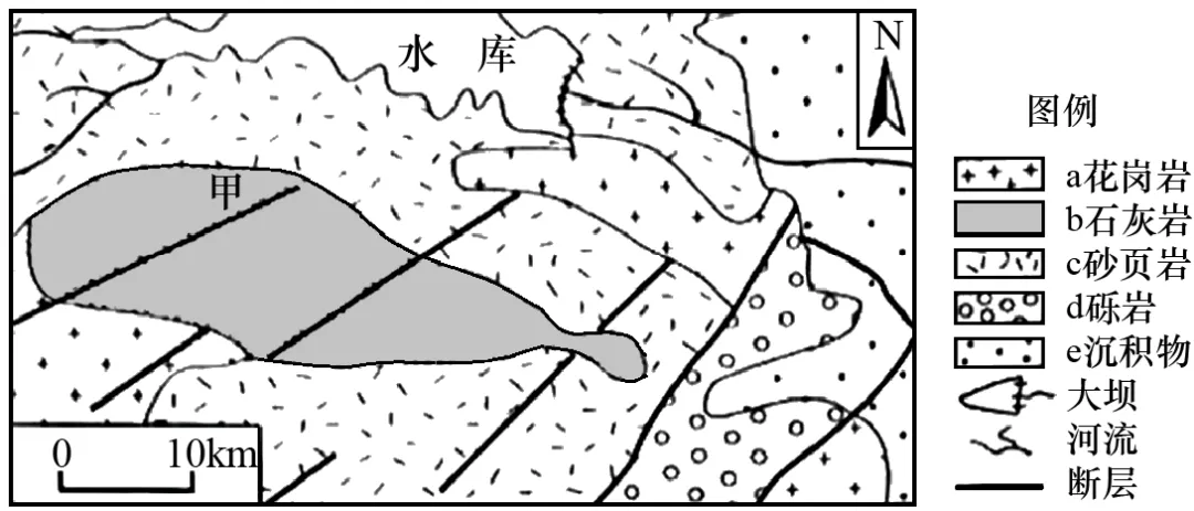 下图为某区域地质构造平面图,图中主体构造为向斜,地形以山地为主,经外力长期侵蚀,地形起伏不大。沉积岩颗粒物粗细与沉积环境中的水深有关,水越深,颗粒物越细。完成下面小题。
