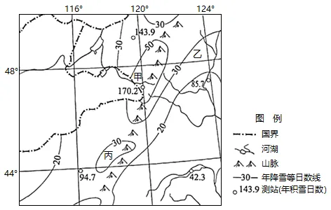 (1)甲地冬季主导风向为____风,乙、丙两地降雪日数较多的地区是____地。