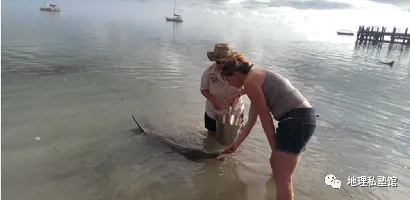澳大利亚西海岸的蒙基米亚拥有典型的砂质海岸,该地是游客全年与野生海豚互动的最佳地点。下图为“游客与野生海豚互动照片”。据此完成下面小题。