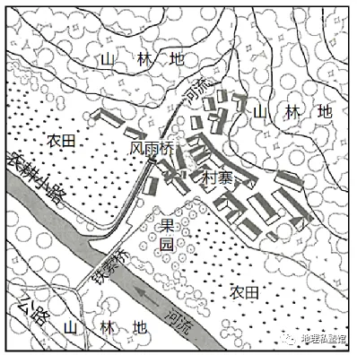 古村落的研究与保护既有利于传统文化的传承,又有利于我国乡村振兴战略的实施。下图为“我国中部山区某传统村寨土地利用结构示意图”。据此完成下面小题。
