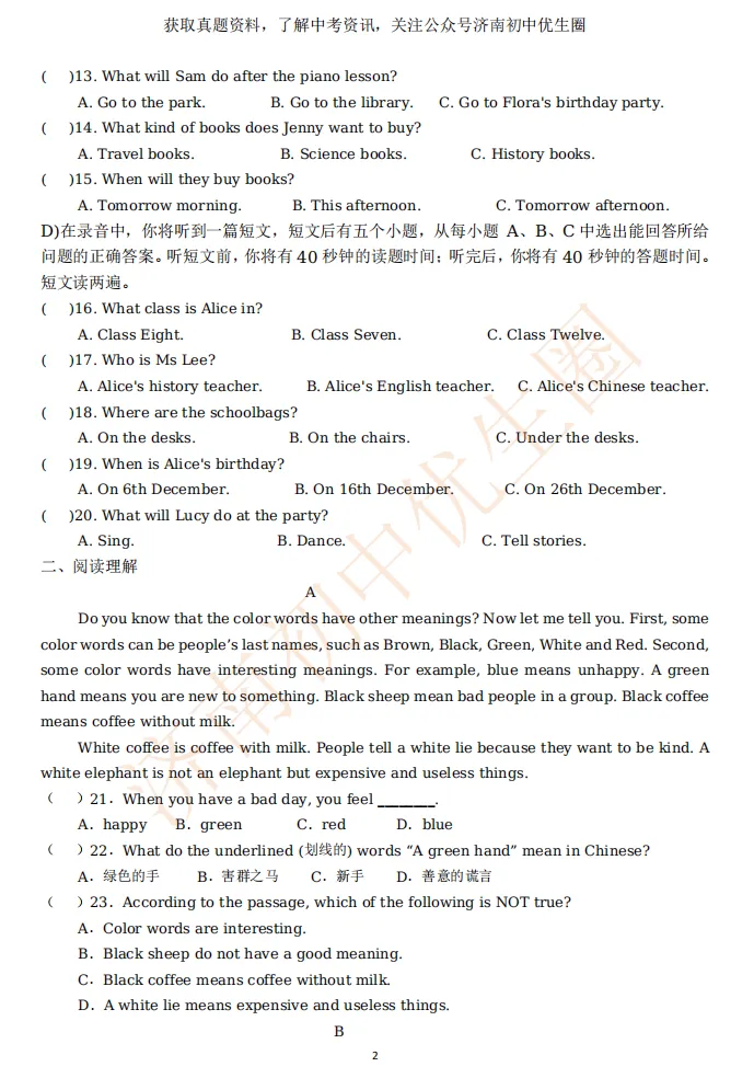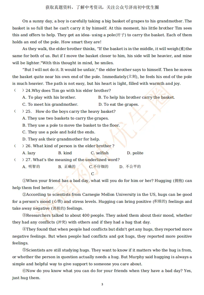 一模时间定了!24年济南初三一模真题+答案解析免费领取!