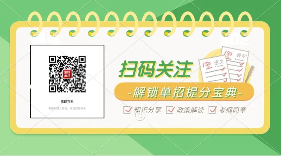大家在备考过程中,可以把“高职百科”微信公众号,推荐给身边需要单招的同学,这里很多文章对大家单招帮助会很大。