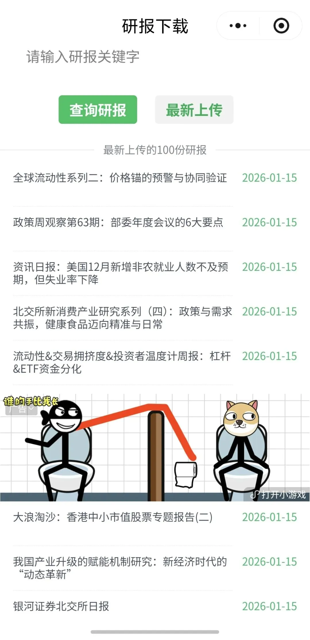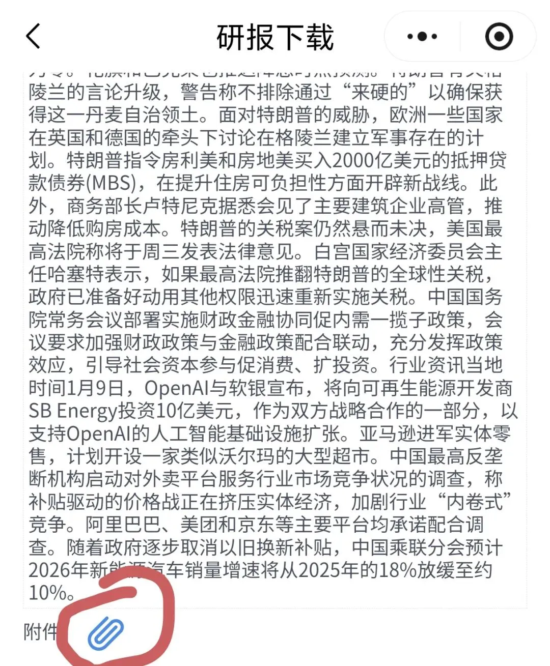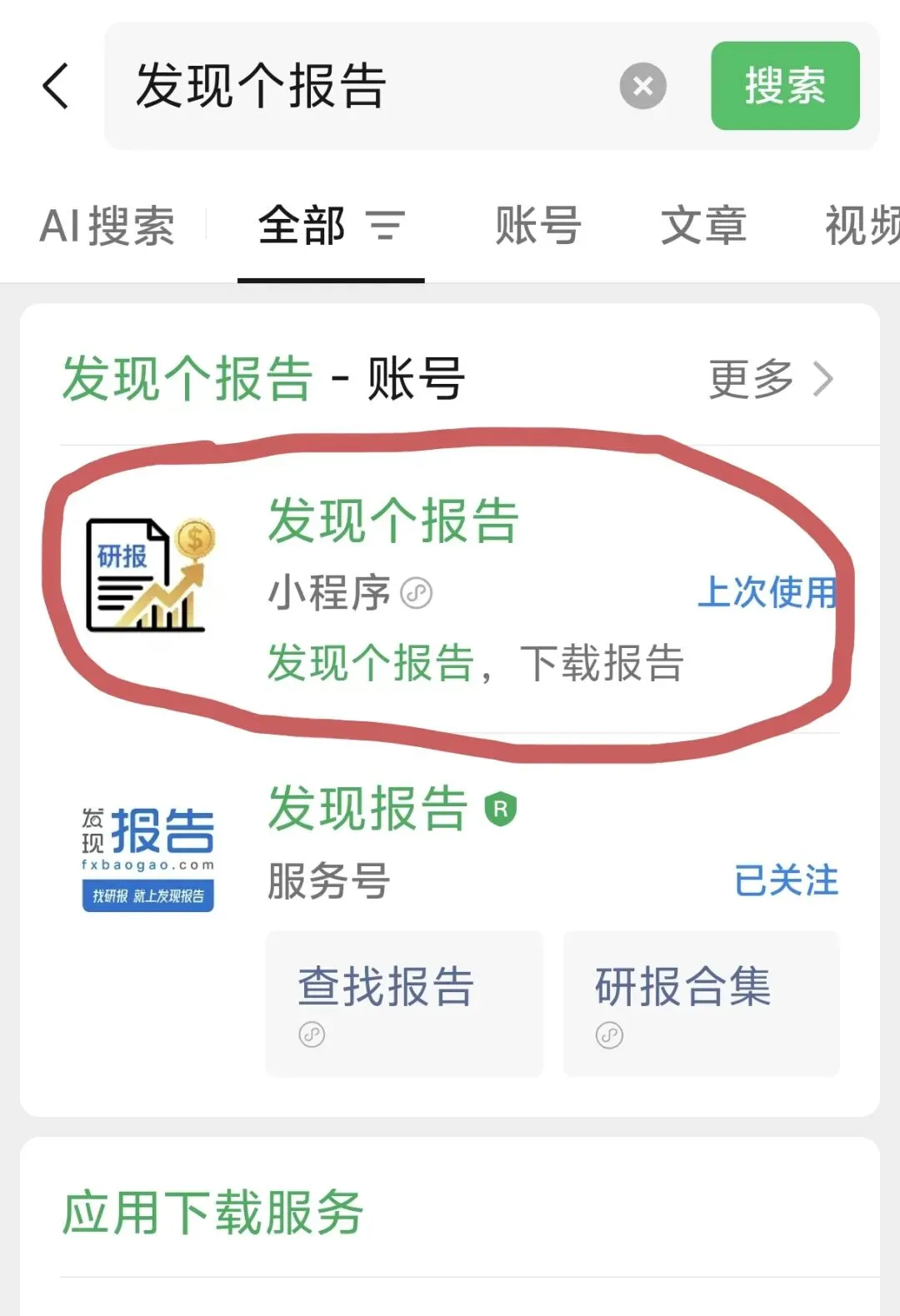 看机构研报可能是每位投资人的必备。机构行业报告、公司报告为我们发现优秀行业和公司,进行价值投资决策指明了方向。研报一般都是付费的,而且价格不菲。为大家推荐一款免费的研报小程序,研报免费看,免费下载,无任何限制。1、找到小程序“发现个报告”可以通过微信搜索获得。2、进入后就是研报列表,列表默认显示最新上传的研报。你可以通过关键字搜索研报。4、划到最底部,看到这个附件按钮,点进去加载出研报。5、在手机上看起来不方便,可以点击右上角三个点。分享、下载研报。