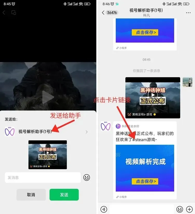 第二步:添加视频解析机器人后,然后把你需要的视频号内容转发给解析机器人。第三步:只需静等几秒钟解析完成,然后我们直接点击下载即可。怎么样?是不是超级简单!