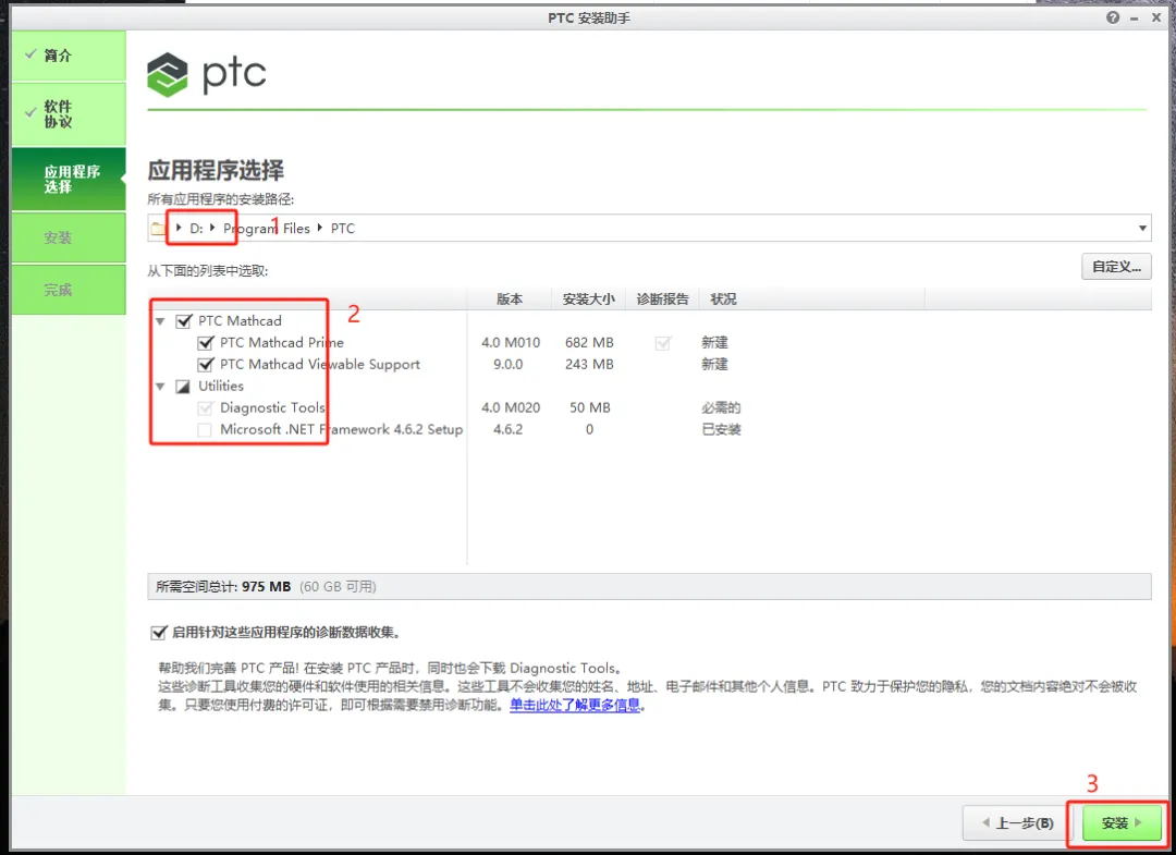 第七步:将安装位置改为D盘,安装位置中不要有中文,勾选需要安装的软件模块,然后点【安装】。