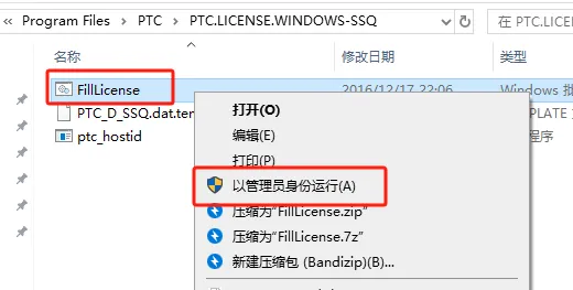 第十六步:选中【FillLicense】,右击以管理员身份运行。