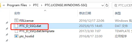 第十五步:打开刚刚拷过来的(PTC文件夹下)【PTC.LICENSE.WINDOWS-SSQ】文件夹。