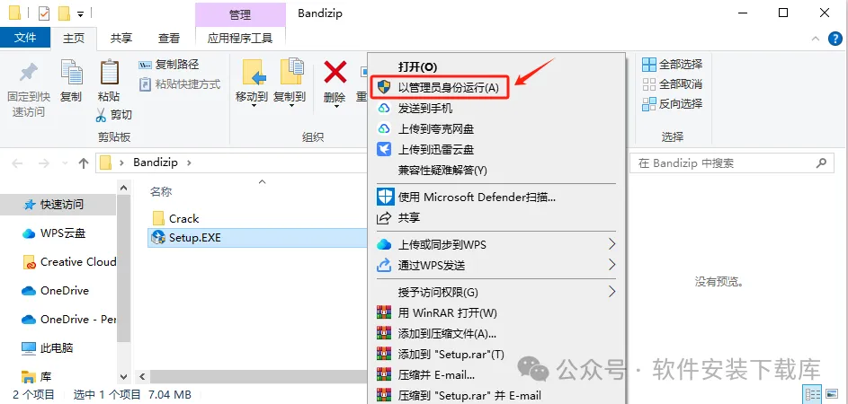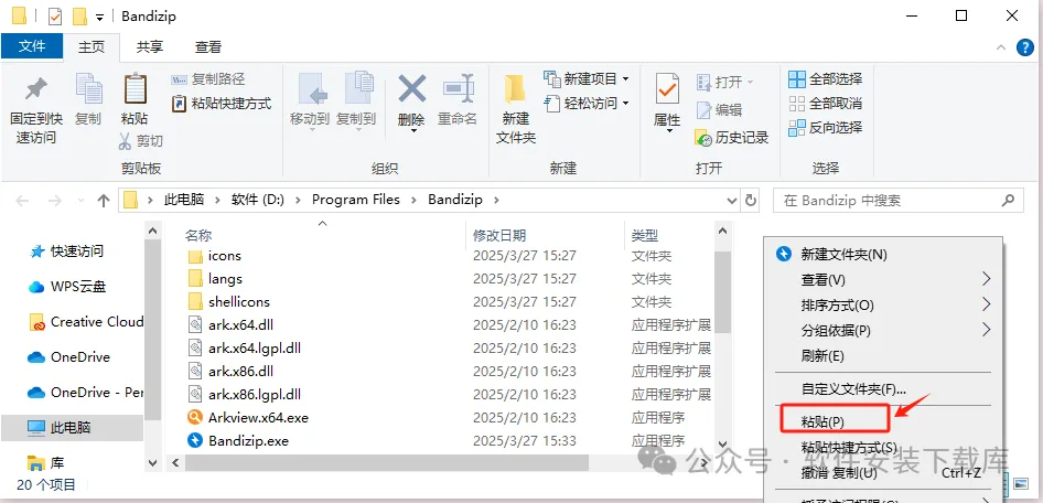| 1.找到下载好的Bandizip安装包,解压安装包:①鼠标右击【Bandizip】压缩包②选择"解压到当前文件夹"2.双击打开解压出来的【Bandizip】文件夹。3.鼠标右击【Setup】选择【以管理员身份运行】。4.选择 评价版。(先装免费版后面才能解锁专业版)5.修改路径地址中的第一个字符C可更改安装位置(如:把C改为D软件将安装到D盘),点击【同意并安装】。6.安装完成,点击【关闭】。7.点击【确定】。8.打开安装包解压后的【Bandizip】文件夹,双击打开【Crack】文件夹。9.鼠标右击【keygen.exe】选择【复制】。(快捷键:Ctrl+C)10..鼠标右击桌面【Bandizip】图标选择【打开文件所在的位置】。11.鼠标右击空白处选择【粘贴】。(快捷键:Ctrl+V)12.鼠标双击【keygen.exe】。13.取消勾选备份文件,点击【应用】。14.双击桌面【Bandzip】图标启动软件。 |