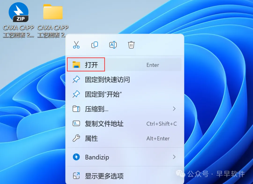 15、回到桌面,右键桌面上的【CAXA CAPP工艺图表 2025软件图标】,点击【打开】