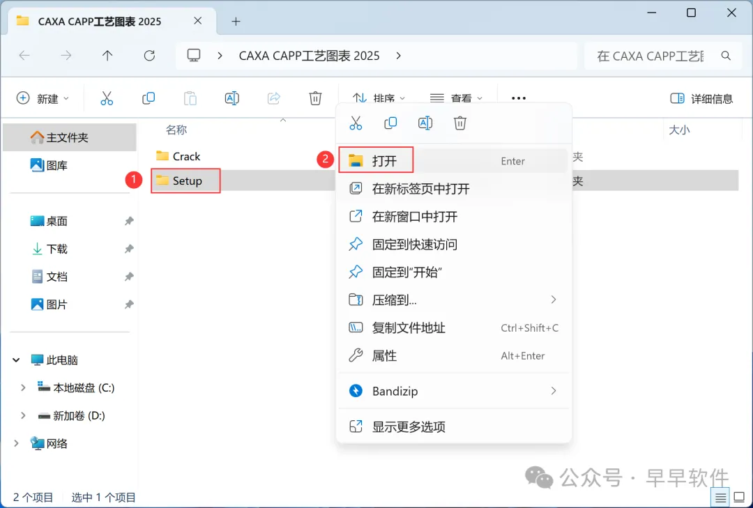 11、回到CAXA CAPP工艺图表 2025文件夹,找到【Crack】文件夹,右键【打开】它